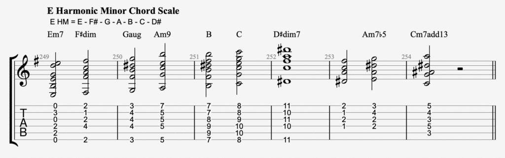 You see, if you take the notes of a scale like A harmonic minor, you can create all sorts of chords different from those found in a major or minor key.
