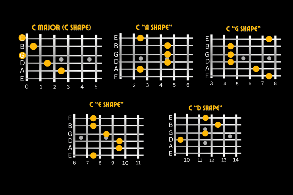 And that’s where the other crucial shapes come from outside of CAGED, which if you’re quick you may have noticed I haven’t given you 3 of the 8 shapes I promised.
