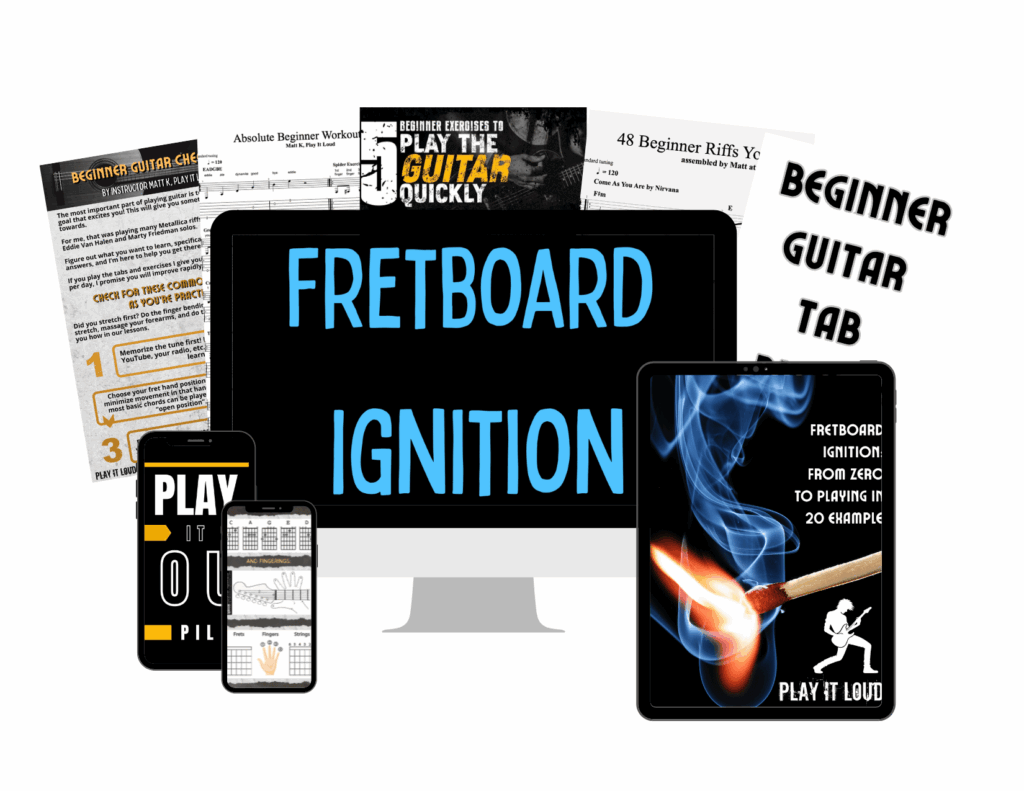 — Fretboard Ignition is a 30 page guide with around 20 musical examples with zero fluff or filler. It’s not going to list every chord and strumming pattern that’s ever existed, and it’s not going to teach you how to make Bach pieces. My goal is to get you playing guitar as quick as possible if you know NOTHING about the guitar!