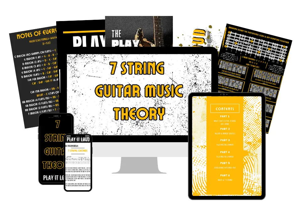 I recently got a 7 string guitar, and my instinct was to start applying all the many ideas in this course to that extra string. I’ll show you the chord shapes and scales I came up that’ll work with your 6 string knowledge. It’s a great way to stop chugging on the low B/A/G string too!