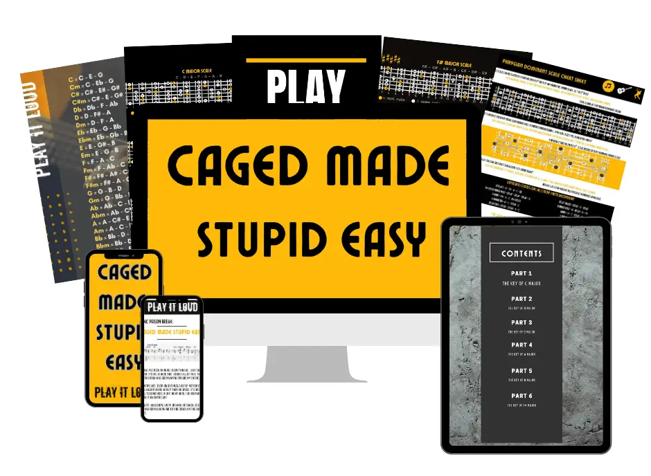 A lot is missing from CAGED courses that I’ve bought, and it’s keeping you from seeing it at play in your favorite songs and solos. This course will help you understand how CAGED can tell you exactly where to go when playing over a chord. Without this, the pentatonic scale is not enough to make music with.