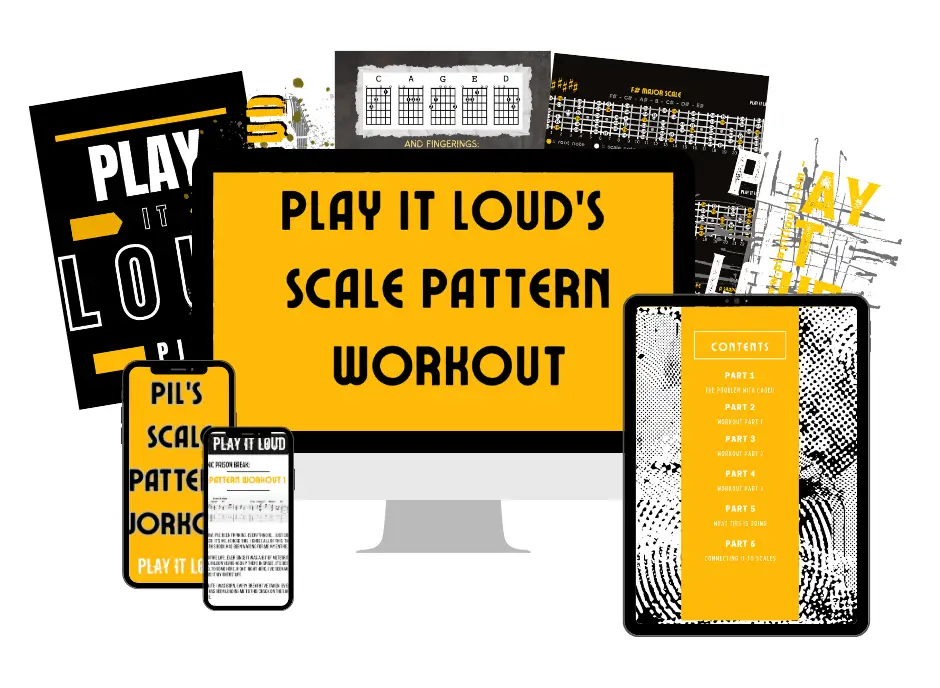 And I can’t make a chord workout without a scale pattern workout! The problem with many guitarists is that they only see and use a few patterns when soloing. This is going to fix that problem quick!